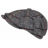 Vente bonnet marin gris rétro en coton avec des empiècements pour un style tendance référence Grey Keroet de la marque Nyls Création, bonnet docker vintage homme et femme pas cher pour une allure originale et sympa. Ce bonnet miki en tissu gris denim est ajustable par une ceinture scratch.