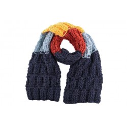 Echarpe Homme et Femme tons bleu, jaune et rouille orange - Echarpe Snowa collection Léon Montane