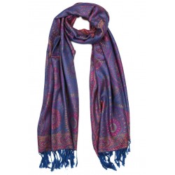 Echarpe pashmina pas cher rose vif avec fantaisies bleues et violettes, foulard pashmina Homme et Femme référence Bombay Collection Léon Montane