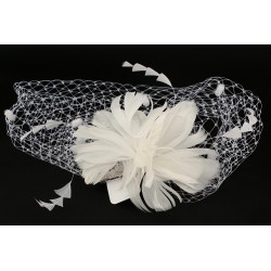 Coiffe mariage Maureen sisal, plumes ivoires et perles