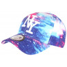 Vente en ligne casquette baseball enfant bleue rose et verte dessins de volutes de fumée fashion modèle Rainbow Smoky collection Hip Hop Honour, casquette garçon et fille streetwear look original et bariolé, NY brodé multicolore en relief, visiere ronde et autocollant New York Original argent, taille 7 à 11 ans.