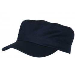Vente en ligne une casquette army bleu marine en toile 100% coton mode armée référence Oleum Kostra proposée par Nyls Création, casquette militaire homme et femme tendance en tissu robuste et confortable, casquette cubaine pas cher bleue foncé avec taille réglable par ceinture arrière et boucle de métal.