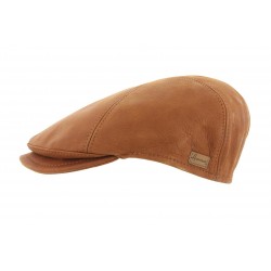 Casquette en cuir cognac de fabrication Italienne, casquette plate en cuir homme et femme coloris tendance référence Wange collection Herman Headwear.