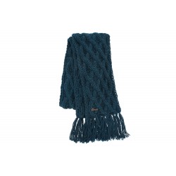 Echarpe bleu petrole pour homme et femme tricot main chaude et douce, echarpe en laine aux dessins de torsades et losanges avec frange collection Herman Headwear.
