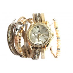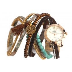 Montre femme fantaisie avec bracelet double tour marron Kelly par Michael John - Montre femme pas cher mode et tendance