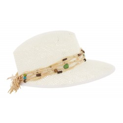 Chapeau casquette de paille pour femme couleur beige, chapeau fantaisie été garnie perles et cuir Sylia sélection Herman headwear