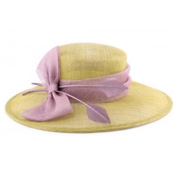 Pochette de soirée Balsa Verte en paille sisal 100% fibre naturelle, petit noeud de satin, petite chaine amovible, grande classe