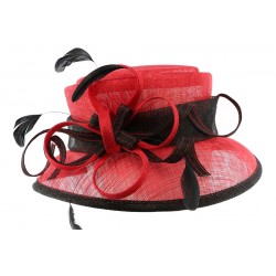 Chapeau de mariage Josepha en sisal coloris Rouge et noir - Grand chapeau de forme capeline de cérémonie montée sur serre tête