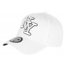 Trouvez en ligne une casquette baseball blanche et noire dessins de toile d'araignée fashion streetwear, casquette NY femme et homme tendance et originale, visière recourbée classe, broderie New York blanche brillante en 3D, autocollant gris argent New York Original, taille réglable, modèle White Spydder de marque Hip Hop Honour.