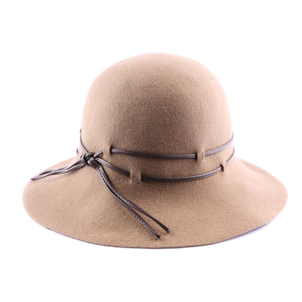 Chapeau de feutre pour femme de la marque Léon Montane, cette capeline de coloris caramel est garni d'un lien de cuir autour de la calotte. Cette capeline est feutre pliable et imperméable.