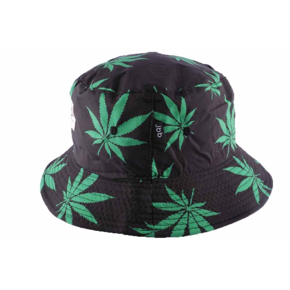 Bob de la marque JBB Couture, ce bob est en tissu noir avec une impression de feuilles vertes sur le dessus. Taille Unique.