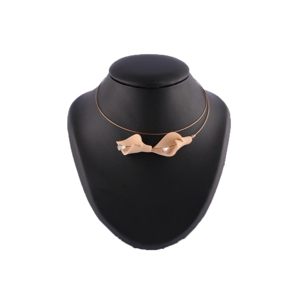 Collier tour de coup monté sur fil doré. Ce collier est accessoirisé d'un paire d'arhums couleur capuccino en résine avec à leurs centres une perle AB à facette. Ce collier très glamour ravira vos tenues de cérémonie été dans les tons beige ou blanc, le tour de cou se porte avec des corstes, des robes longues ou des blouses ras du cou.