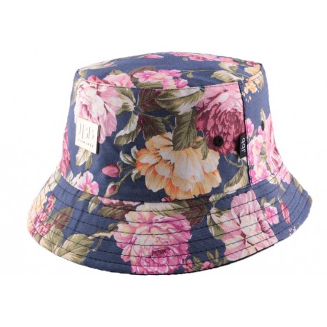 Bob streetwear sélection JBB Couture. Ce bob est façon blue jeans avec une impression de motifs à fleur jaune et rose dessus. Sur le devant on retrouve un plaque dorée JBB, il est réversible our devenir un bob tissu noir uni. Taille unique