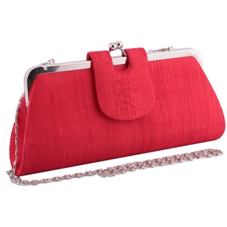 Pochette de soirée en sisal de la marque Léon Montane modèle Bulle, cette pochette est en sisal rouge, sur le haut on trouve un fermoir métal. Elle dispose d'une chaine métal.
