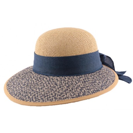 Chapeau en paille Amiata coloris Naturel et bleu - Capeline en raphia