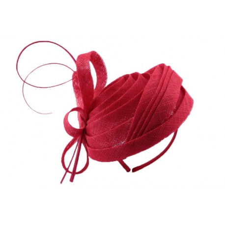 Chapeau de cérémonie de la marque Léon Montane modèle Calliope, ce Fascinator est en sisal rouge il est garni d'un tourbillon de sisal avec sur le coté deux grandes plumes. Taille unique.