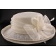 Chapeau de cérémonie en sisal de la marque Léon Montane, cette capeline est en sisal écru, elle a les bords remontées, sur le devant il y à une garniture de sisal. Taille unique.