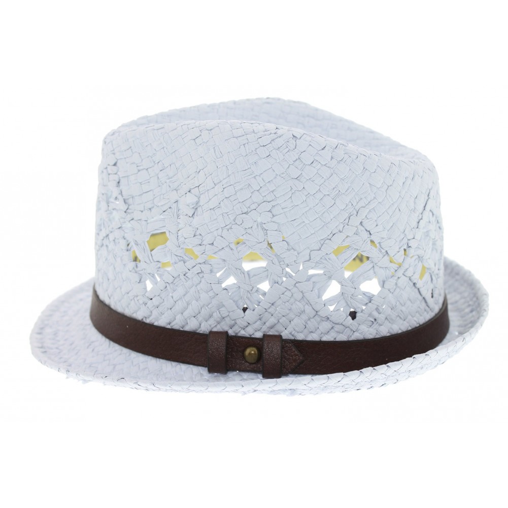 Chapeau de paille de la marque Herman 1874, il est relever à l'arrière, on retrouve autour de la calotte une ceinture de cuir.