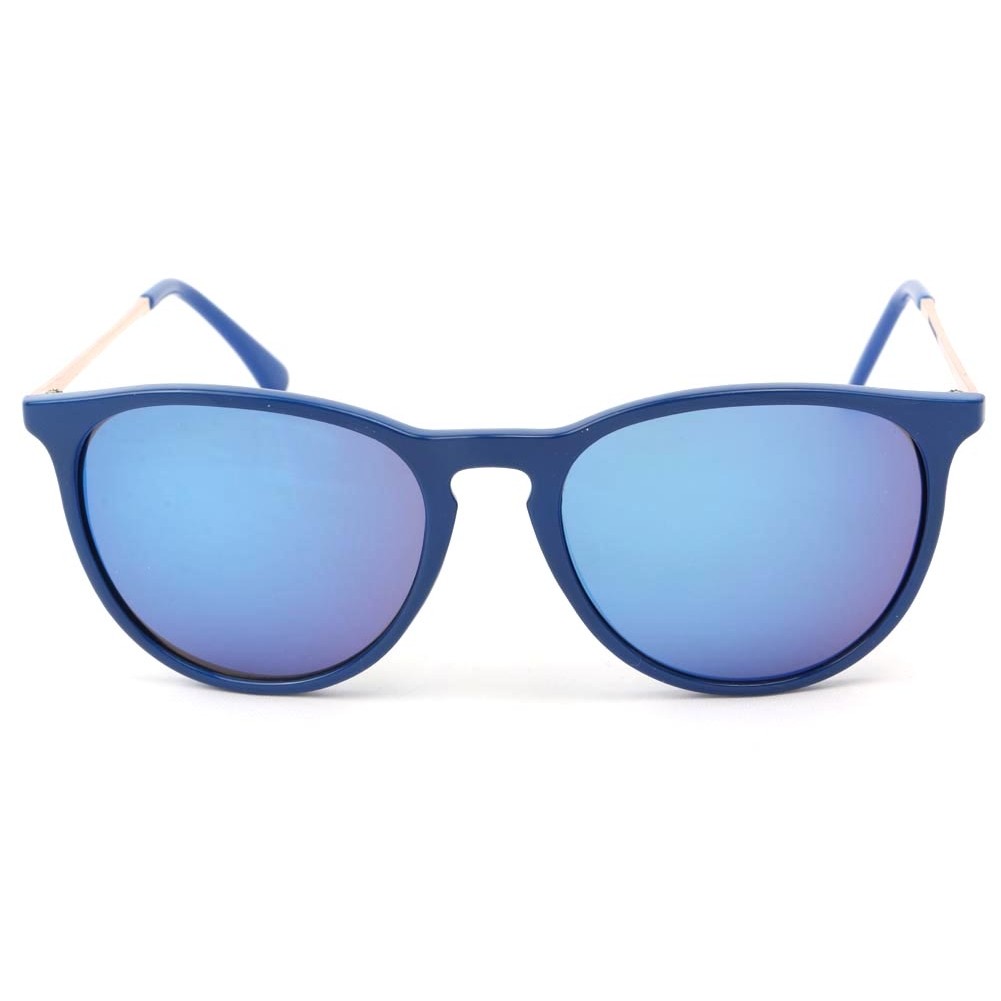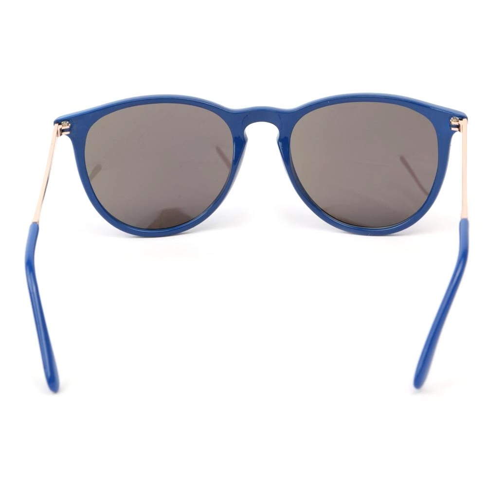 Lunettes de Soleil Eye Wear, lunettes de soleil Catégorie 3 CE, la monture est bleu avec des branches dorées, les verres sont légèrement fumés Bleu.