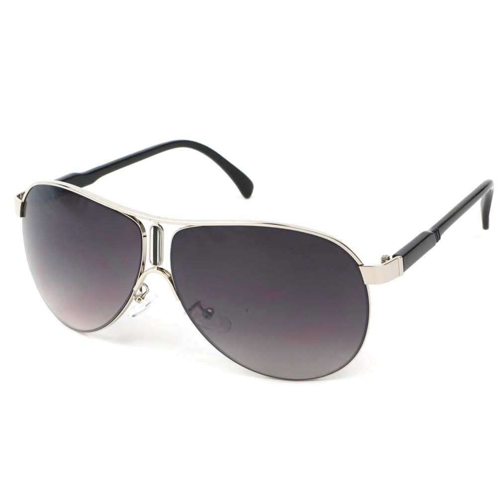 Lunettes de Soleil Eye Wear, lunettes de soleil Catégorie 3 CE, la monture est argent et noire, les verres sont fumé noire. Ces lunettes de soleil sont des formes pilotes.