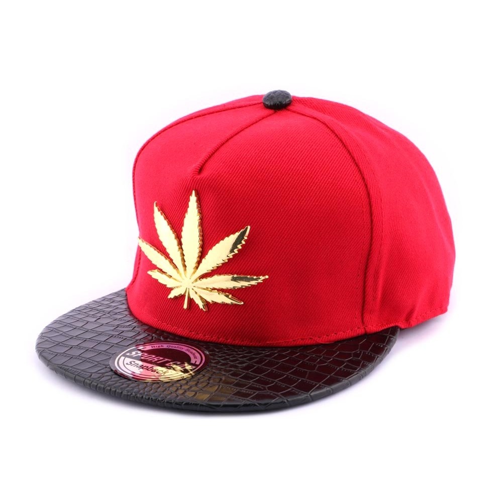 Casquette Snapback Rouge feuille métallique dorée visière noire