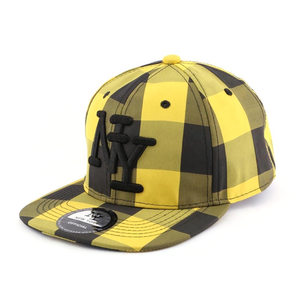 Snapback Enfant New York Jaune à carreaux noirs âge 8 -12 ans - Snapback petite taille streetwear Hip Hop