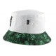 Bob style urbanwear de la marque JBB Couture, ce bob est blanc avec un revers façon feuillage naturel, sur le devant on trouve un patch Dope. Ce Bob est réversible.
