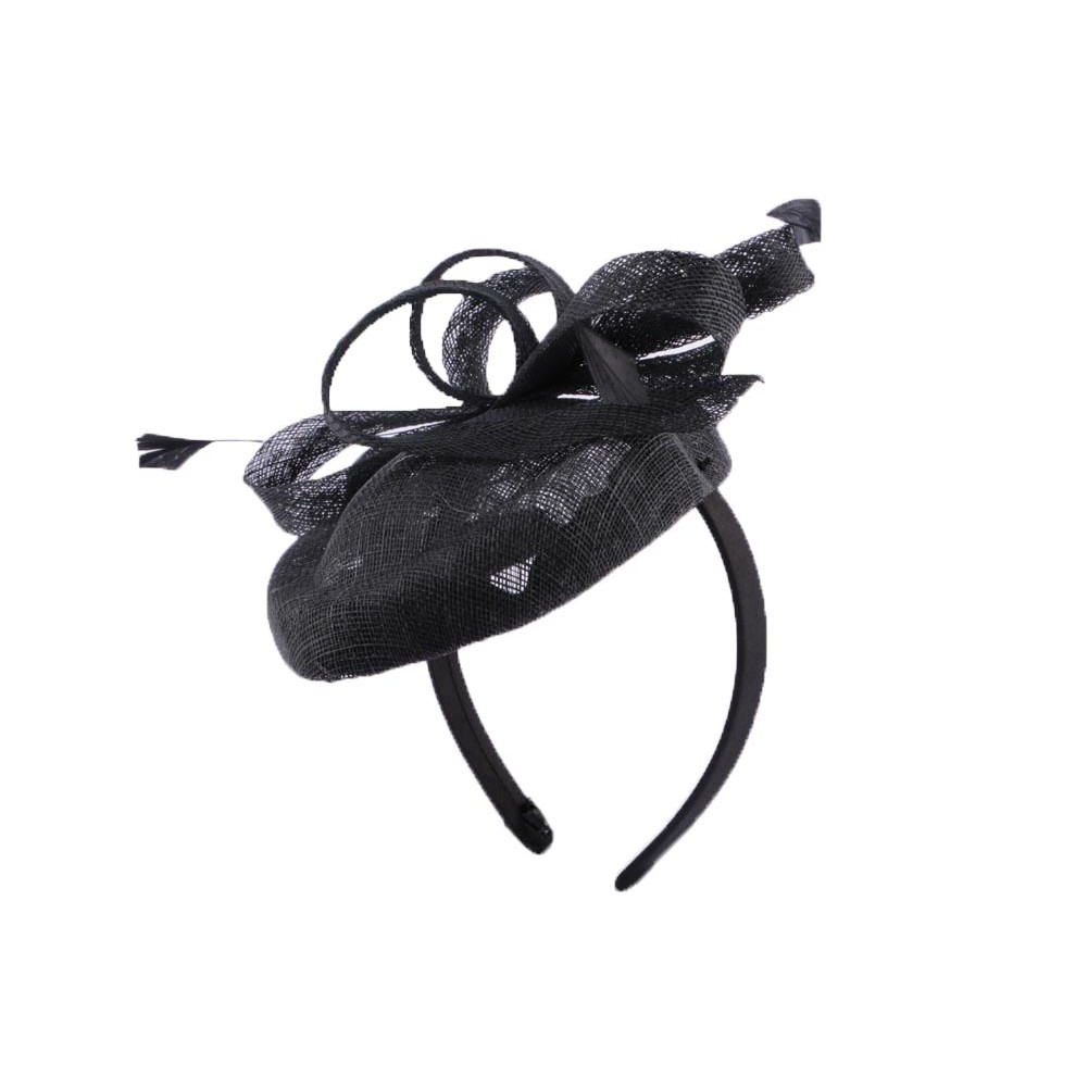 Coiffe de cérémonie de la marque Léon Montane modèle Cardéa, cette coiffe de cérémonie est montée sur serre tête, c'est un mini chapeau sur le dessus avec des plumes.