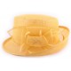 Chapeau Mariage de la marque Léon Montane modèle Fides, ce petit chapeau est en sisal Jaune, il est garni sur le coté d'une petite fleur plume en sisal. Taille unique.