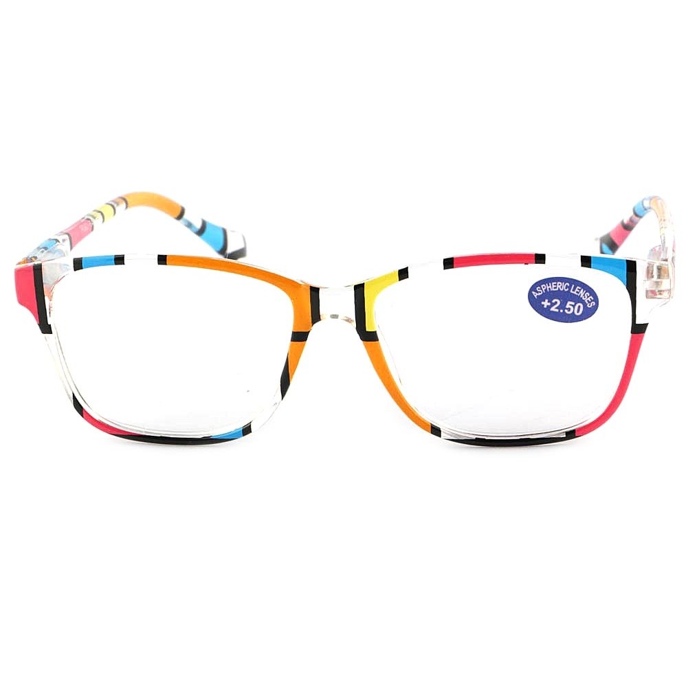 Lunnettes de lectures de la marque New Time modèle Azza, ces lunettes loupes on une monture multicolor Rouge Jaune et Bleu. Elles ont une correction de dioptrie+2,5. Norme CE et NF EN 14139 livrée dans une housse tissu.
