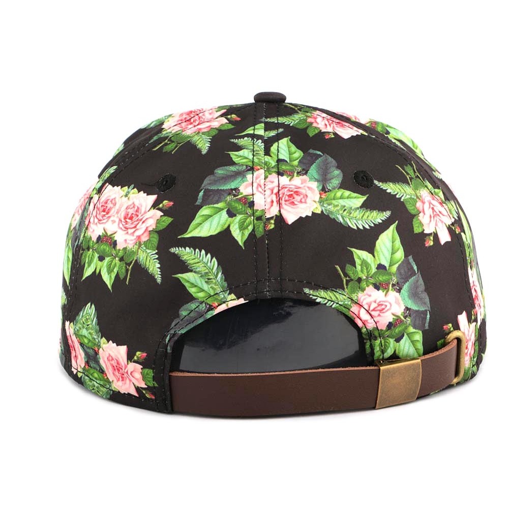 Casquette Snapback de la marque Hype modèle FEB FLOWERS, cette snapback a le top en tissu florale avec une dominante noire et des impressions de roses. A l'arrirèe nous l'attache pour le réglage de la taille.