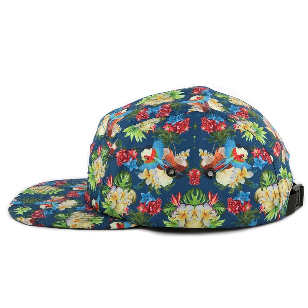 Casquette 5 panel Bleu et verte marque Hype modèle Parrot Coconut Bleu - Five panel Fleurs tropicales et perroquets look Urbanwear