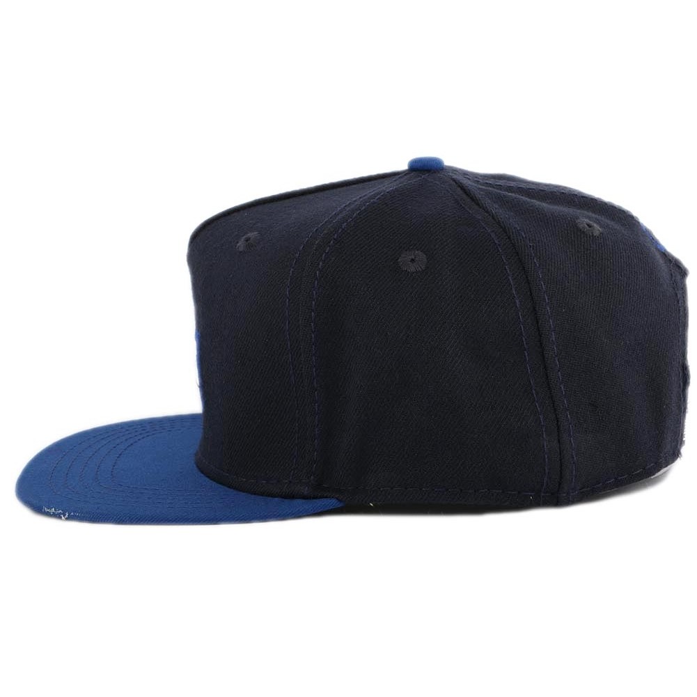 Snapback bleu Homme et Femme marque Crooks and Castles modèle Core logo. Cette casqette snapback est marine avec une visière bleue Cobalt. Le top de la casquette présente un logo rectangle brodé Crooks and Castles blanc sur fond bleu cobalt. A l'arrière, sous le C brodé allure menotte, est fixée la languette de taille en plastique noir.