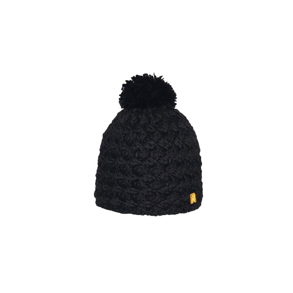 Bonnet pompon noir tricot main, bonnet en laine homme et femme pour ski et ville avec maille croisée par R Mountain gamme Ice