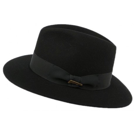 Véritable Chapeau Indiana Jones noir - Chapeau Feutre de laine noire forme Fedora marque Mayser