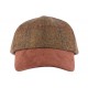 Casquette forme baseball de la marque Olney Headwear modèle Sport Cap, cette casquette est tweed vert. Sur le devant de la casquette nous avons une visière en suédine marron clair. Nous trouvons sur l'arrière de la casquette un élastique pour la taille.