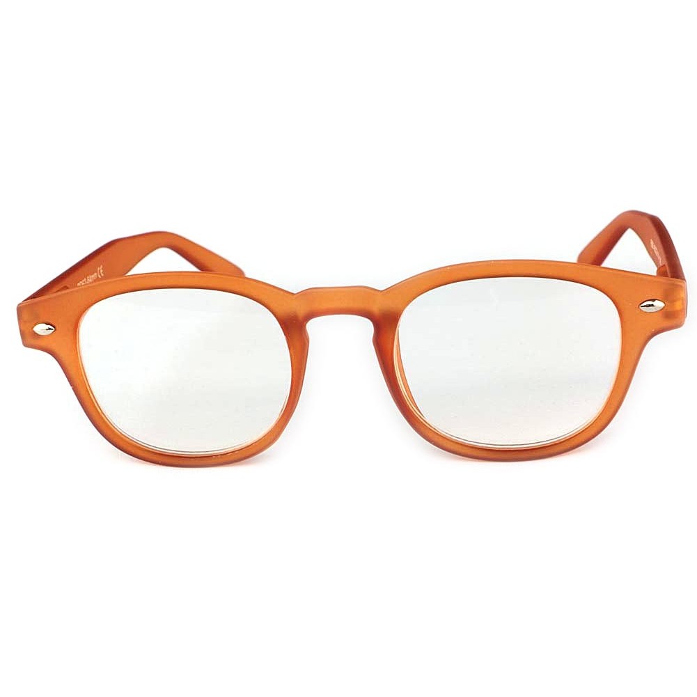 Lunettes loupes de la marque New Time modèle Vigo, ces lunettes de lectures ont une monture transparente est marron clair d'inspiration classique. Elles ont une correction dioptrie +1.5. Norme CE et NF EN 14139