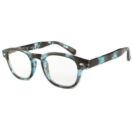 Lunettes loupes de la marque New Time modèle Lugo, ces lunettes de lectures ont une monture transparente est Bleu et noire d'inspiration classique. Elles ont une correction dioptrie +4. Norme CE et NF EN 14139