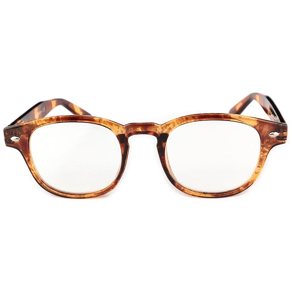 Lunettes loupes de la marque New Time modèle Lugo, ces lunettes de lectures ont une monture transparente est marron et écailles d'inspiration classique. Elles ont une correction dioptrie +2. Norme CE et NF EN 14139