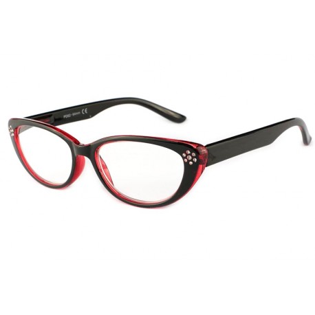 Lunettes loupes de la marque New Time modèle Lorca, ces lunettes de lectures ont une monture noir avec un intérieur rouge, d'inspiration moderne. Elles ont une correction dioptrie +3.5. Norme CE et NF EN 14139