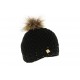Bonnet noir pompon fourrure racoon, bonnet strass femme en laine tricot main doublé plush look classe par R Mountain
