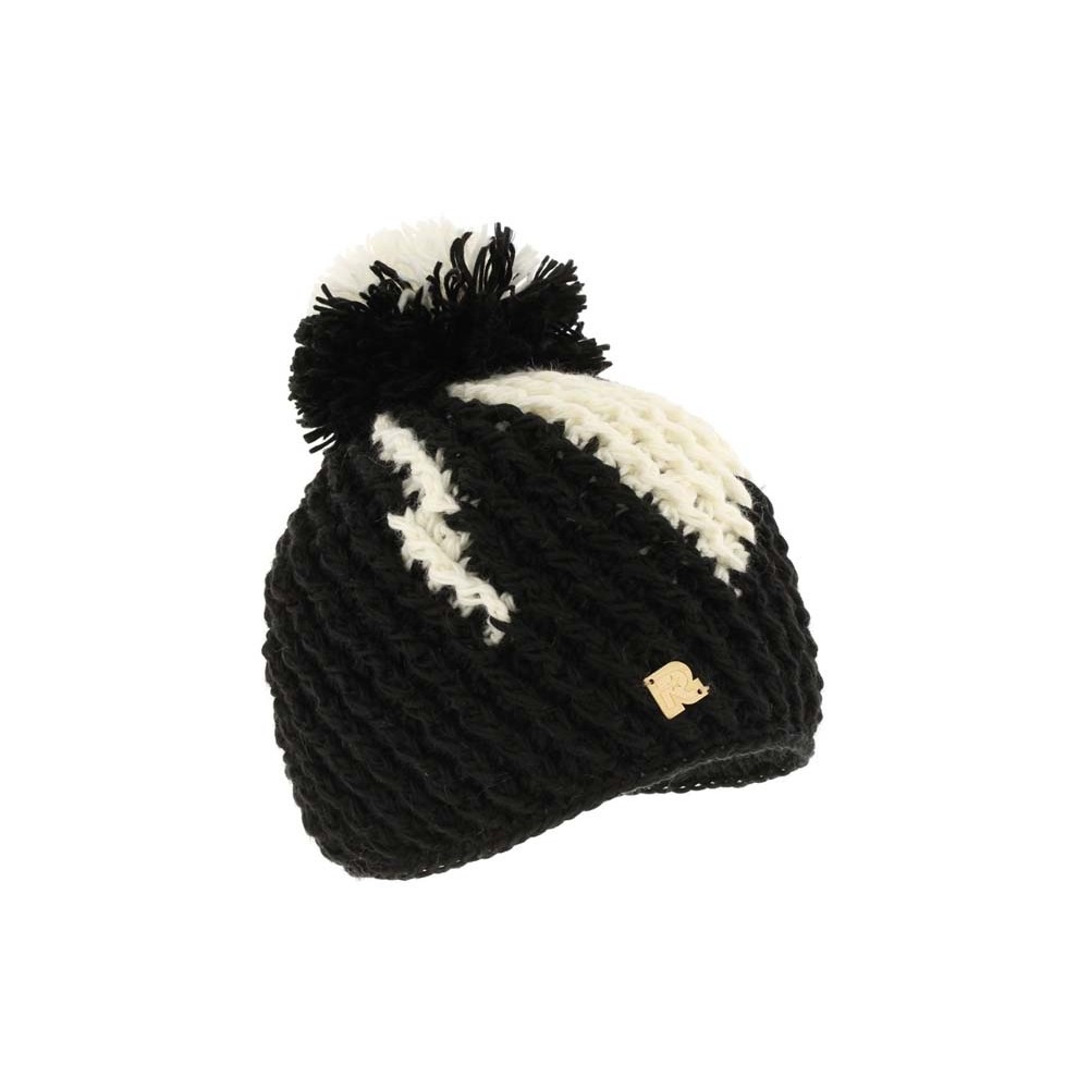 Bonnet Pompon oblique Ice bicolore Noir et Ecru Rmountain