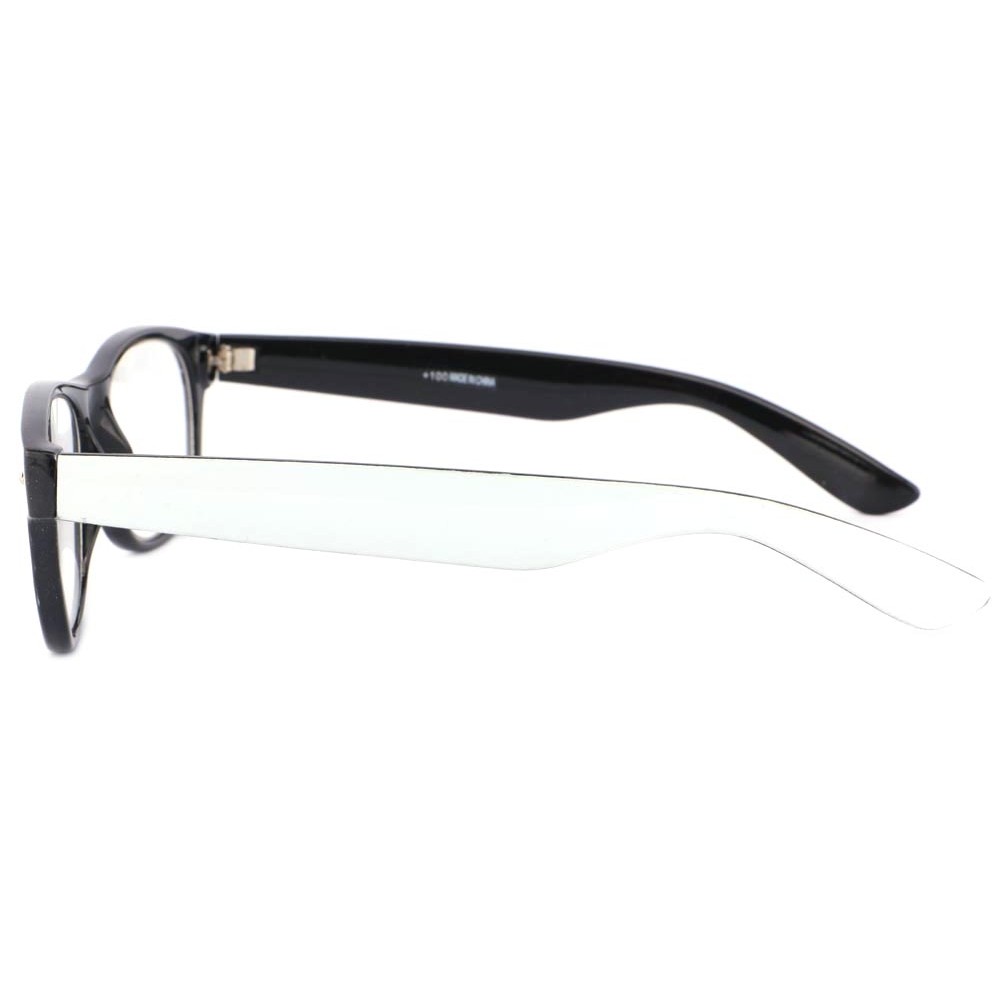 Lunette Loupe Tendance Homme et Femme forme étenelle modèle Shape de marque Loupea. Ces lunettes de lecture présentent une monture en plastique à l'allure universelle, le style montre le côté extérieur blanc et le côté intérieur noir pour un effet moderne réussi. Ces lunettes presbytes chic sont montées de verres à +2 dioptries pour une aide précieuse à la lecture ou autre activité nécessitant bien voir de près.