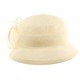 Chapeau mariage de la marque Léon Montane modèle Jeda, ce petit chapeau rétro est en sisal écru. Ce chapeau de cérémonie est ganir d'une composition de mélanges de liens de sisal, de plumes et de voilette. Taille unique.