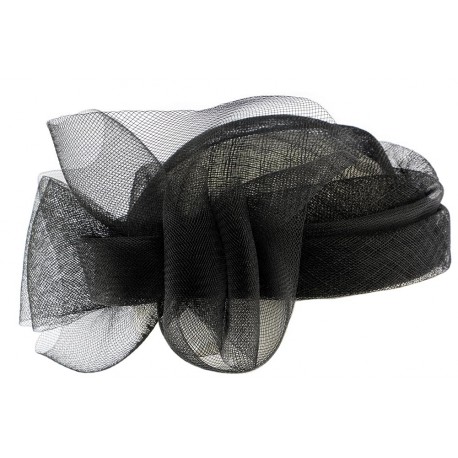 Chapeau de ceremonie Noir par Léon Montane - Bibi mariage en sisal et crin noir