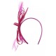 Coiffe mariage violette de marque Léon Montane modèle Sybel. Cet accessoire ce cheveux est monté sur serre tête recouvert de doux satin, la coiffe de mariée est en plumes et sisal violet et forme un noeud allongé aux multiples rubans. Style léger et vaporeux, cette coiffe mariage sera le plus de votre coiffure de mariage.