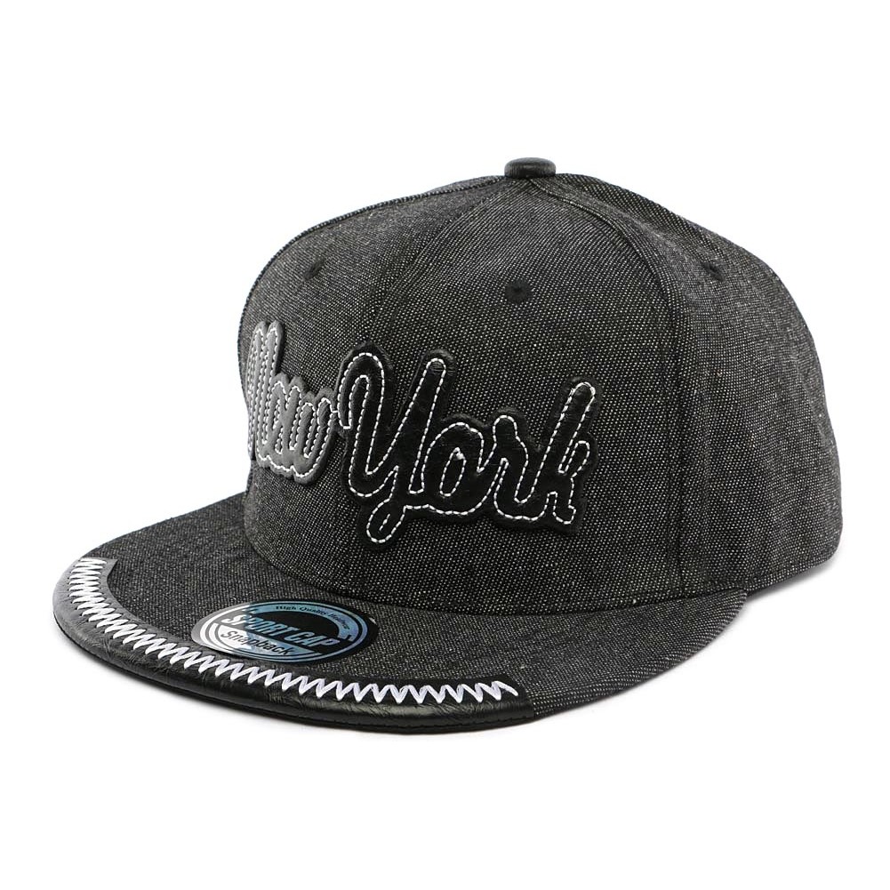 Casquette snapback de la marque Hip Hop of Honour, cette snapback est gris foncé tissu façon jeans brut, sur le devant de la visière on trouve un renfort façon gant de baseball, sur le devant du top nous avons l'inscription New york. A l'arrière il y a l'attache de régalge pour la taille.