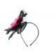 Coiffe de cérémonie originale en plume, noire et rose; montée sur un serre tête.