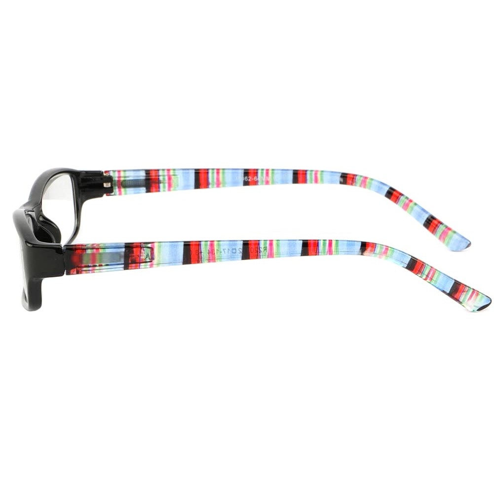 Lunettes loupe de la marque New Time modèle Baya, ces lunettes de lecture ont une monture multicolors bleu, rouge et noire sur les branche. Ces lunettes ont une correction de dioptrie +2.