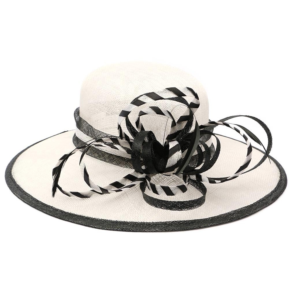Chapeau Mariage Blanc et Noir en paille Sisal Elément